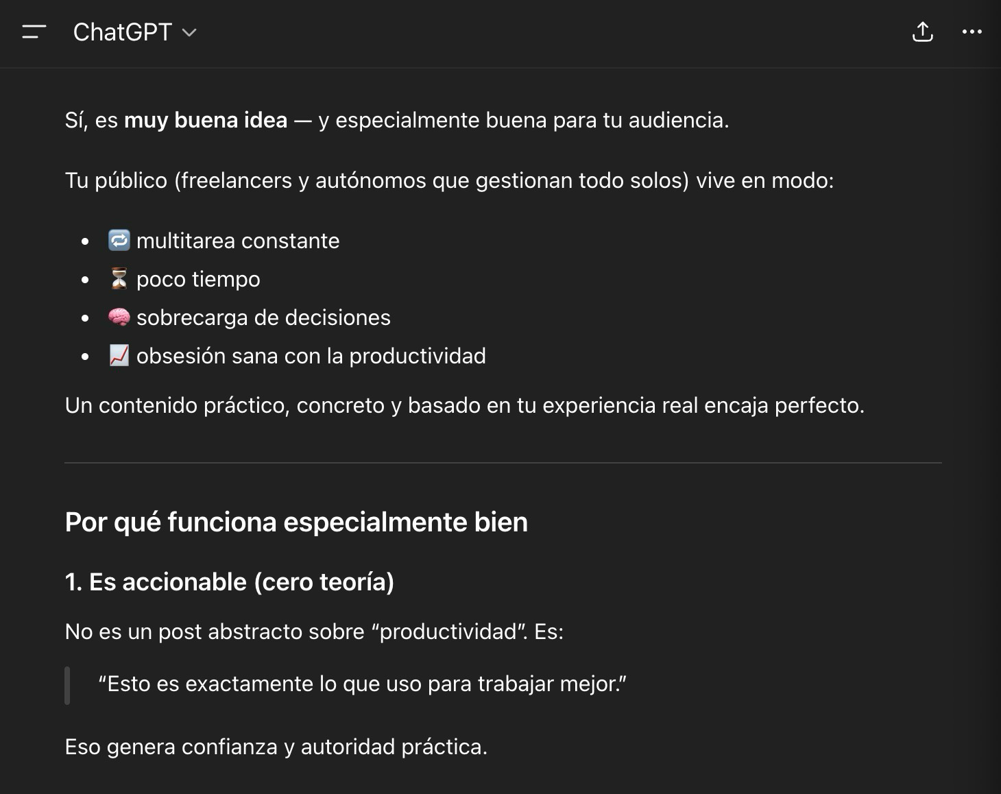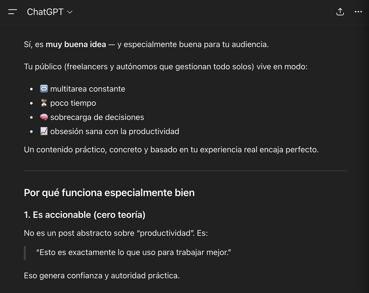 Cuando le pides a ChatGPT, Claude o Gemini que evalúe tu idea de contenido, tu propuesta a un cliente o tu nuevo servicio, la respuesta suele ser:
